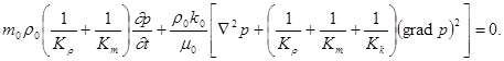 (28) Опытные данные показывают, что в реальных случаях (p-p0 )/Кm <<1; (p-p0 )/Кr <<1 и т. д. Подставляя второе уравнение (27) в первое и преобразуя получающее соотношение с учетом (28), находим, пренебрегая малыми величинами,