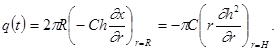 h(r, t0 ) = 0; h(¥, t) = 0. (94) Предположим далее, что расход закачиваемой жидкости изменяется со временем по степенному закону. Выражение для полного расхода жидкости, закачиваемой через скважину радиусом R, имеет вид: