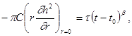 (95) По предположению, радиус скважины пренебрежимо мал (ниже мы остановимся на причинах, по которым это допущение можно делать для большинства реальных движений), поэтому можно принять R = 0; так как расход жидкости, закачиваемой в скважину, меняется по степенному закону, граничное, условие на скважине принимает вид: