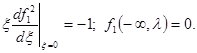 (100) Исследование этой граничной задачи проводится аналогично предыдущему; также единственным образом строится функция f1 (x, l), отличающаяся от нуля лишь при 0 £ x £ x1 (l), где x1 (l) - некоторая функция x, а при x ³ x1 (l) тождественно равная нулю. Функция f1 (x, l) при x®0 имеет особенность, как нетрудно видеть из первого условия (100):