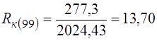 где И - затраты на производство и сбыт продукции. В 1999 г. В 1998 г. Отсюда следует, что каждый рубль затрат на производство и сбыт продукции в 1999 году принес предприятия прибыли 12,23 коп., это в 2,87 раза больше, чем в предшествующем 1998 году. 3) рентабельность (доходность) всего капитала предприятия (RК ):