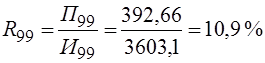 где Rп - рентабельность продаж; Прп - прибыль от реализации продукции; В - выручка от реализации продукции. В анализируемом периоде (1999 г.):