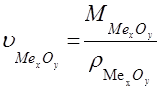 В этих условиях окисление всегда возможно, но наряду с растворением оксида появляется и оксидный слой на поверхности металла, который может тормозить процесс окисления. Скорость окисления металла зависит от скорости собственно химической реакции и скорости диффузии окислителя через пленку, а поэтому защитное действие пленки тем выше, чем лучше ее сплошность и ниже диффузионная способность. Сплошность пленки, образующейся на поверхности металла, можно оценить по отношению объема образовавшегося оксида или другого какого-либо соединения к объему израсходованного на образование этого оксида металла (фактор Пиллинга—Бэдвордса). Рассмотрим реакцию окисления металла x Me + у O ® Mex Oy объем полученного оксида: