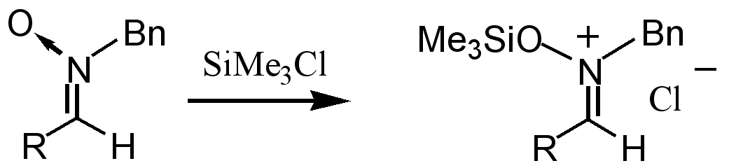 Активирующее действие триметилсилилхлорида объясняют его взаимодействием по атому кислорода нитронной группы, что способствует увеличению положительного заряда на -атоме углерода нитронной группы и повышает, таким образом, его электрофильность.