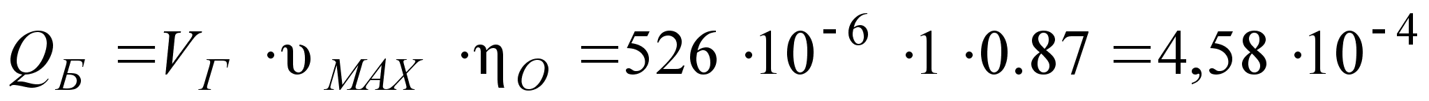 где МMAX – момент сопротивления на валу мотора, Нм; VГ – рабочий объем мотора, м3/об; М – механический КПД мотора. Расход рабочей жидкости на входе и выходе гидромотора: