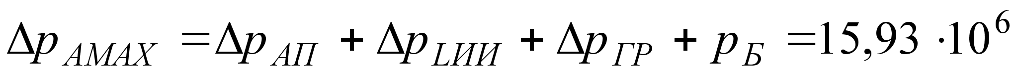 Определяем выходные параметры насосной установки. Максимальное давление на выходном патрубке: рАМАХ=рАП+рДС+рГР+рБ=12.1106 (Па); минимальное: рАМIN=рАП+рДС+рГР=0.282106 (Па). Требуемая подача насоса: QAMAX=QБ+QУ, где QУ=QУ.АП=25.910-6 м3/с – суммарный расход утечек в гидроаппаратах. QАМАХ=3.4210-4+25.910-6=3.6710-4 (м3/с). Площадь условного прохода дросселя: