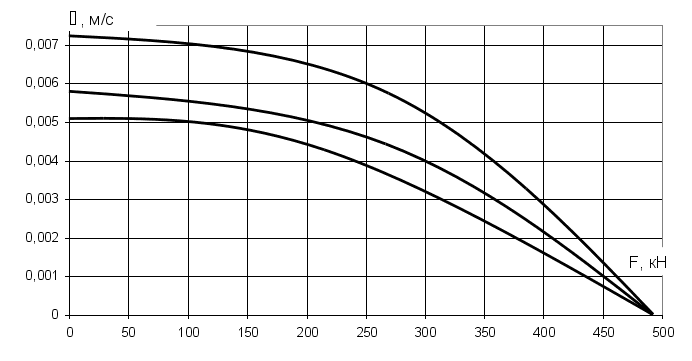 М Р Рисунок 2.3 – Скоростные характеристики привода вращения валка 2.1.2 Гидропривод торцового ориентирования Гидравлическая принципиальная схема приведена на листе 3 графической части дипломного проекта. По заданному значению усилия на штоке гидроцилиндра привода торцового ориентирования FMAX=425.76 кН и допустимой скорости движения штока при ориентировании MAX=0.005 м/с выбираем исполнительный орган – гидроцилиндр 1П110.16.10.000 производства НКМЗ (разработан для шахтного проходческого комбайна средней серии 1П110, привод подъема стрелы с резцовыми коронками), имеющий следующие технические характеристики – таблица 2.4. Одним из существенных преимуществ данного гидроцилиндра являются его незначительные габариты при большом развиваемом усилии, что особенно важно – привод торцового ориентирования предполагает малые перемещения (до 500 мм) довольно тяжелых прокатных валков (массой до 150000 кг). Определение входных и выходных параметров гидроцилиндра. Давление рБ на входе в поршневую полость (при условии, что давление на выходе рВ=0):