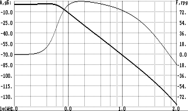 Т.к. в приводе последовательно включены два звена второго порядка, то в области высоких частот ЛАЧХ привода будет иметь наклон порядка -120 dB/дек, что неприемлемо для приводов (рисунок 2.7). Желаемая ЛАЧХ для медленных приводов имеет вид - рисунок 2.8.