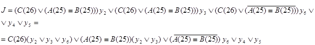 Таблица идентична таблице 11, соответственно функции имеют вид, J=1, K=1. y2 : C(26):=A(25)+B(25) В виде логической функции это получится так,