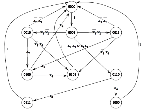 =0 в конъюнкции появится член Граф управляющего автомата представлен на рис. 3.2.2.
