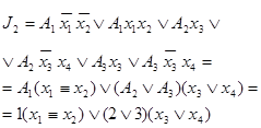 Из табл. 6 можно написать функцию возбуждения для триггера по входам J и K. J=1, K=0. Теперь можно написать общий вид функции возбуждения поля П(1).
