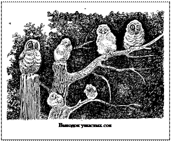 ОТРЯД СОВЫ Этот отряд объединяет- птиц, ведущих ночной образ жизни, имеющих большие, обращенные вперед глаза, от которых во все стороны расходятся мелкие перышки, образующие характерный для отряда лицевой диск. Голова крупная и как бы слитая с туловищем, но, несмотря на это, очень подвижная—совы могут поворачивать голову на 180°. Хотя совы типичные ночные птицы, но они и днем видят довольно хорошо. В период выкармливания молодых болотные совы иногда охотятся даже днем. Оперение сов рыхлое, мягкое и способствует бесшумному полету этих хищников. Слух развит у них прекрасно. Ушные отверстия очень велики и у некоторых видов окружены более длинными перьями, образующими как бы наружное ухо. Большинство сов имеет мимикрирующую пеструю окраску, где по рыжевато-серому фону разбросаны мелкие пестринки. Самки,, как правило, крупнее самцов. Как и дневные хищники, совы имеют крючкообразно загнутый клюв и хорошо развитые когти, причем наружный палец может поворачиваться назад — это облегчает схватывание добычи. Пища состоит из различныхx теплокровных животных, среди которых) преобладают грызуны— полевки и мыши. Неперевариваемые остатка пищи совы выбрасывают в виде погадок, которые отличаются от погадок дневных хищников своей округлой формой. Гнезда сов очень примитивны, и некоторые виды откладывают яйца просте на землю или в дупло; ушастые совы часто занимают гнезда ворон. Насиживает самка. Сразу после того, как снесено первое яйцо, самка садится на гнездо, в связи с чем птенцы вылупляются неодновременно, что значительно облегчает их выкармливание. В фауне Татарстана совы представлены 12 видами. Филин, неясыть, сова ястребиная и некоторые сычики ведут оседлый образ жизни, а белая сова и неясыть бородатая появляются у нас зимой только в некоторые годы. Все совы, несомненно, полезные птицы, и если изредка они ловят промысловых зверей и птиц, то это с лихвой компенсируется большим количеством уничтоженных ими мышей и полевок. Филин Самый крупный представитель отряда, вес которого достигает 3 кг. Нa территории Татарии встречается повсеместно, но излюбленным местом его обитания является лесная глушь. В настоящее время филин сравнительно редок, но все же веснрй во всех крупных лесных массивах республики можно слышать по ночам его глухой крик «уху-уху», пере-ходящий иногда в очень неприятный звук, напоминающий крик челове-ка или плач ребенка. Это, видимо, послужило причиной создания в наро-де поверий, согласно которым филин предвещает беду. Часто и в наше время крик филина отождествляют с хохотом «лешего». Пища филина очень разнообразна и зависит от количества того или иного корма в природе. По материалам Т. М. Кулаевой, основной пищей филина служат мышевидные грызуны. Так, в желудке филина, добытого в феврале 1946 г. Я. П. Коксиным, были обнаружены остатки 40 полевок и мышей. Несомненно, что грызуны составляют основу его пищи, но, когда их мало, филин способен брать зайцев, ловить тетеревов, куропа-ток, грачей, галок, ворон и соек и отваживается нападать даже на лис. Так, в одном из лесных оврагов около Матюшина был убит филин в момент его нападения на лису. Гнезда филин не устраивает, а прямо на земле кладет 2—3 белых, почти шаровидных яйца, характерных для всех сов. Филин, несомненно, нуждается в охране, и охотники должны помнить, что если он и уничтожает н