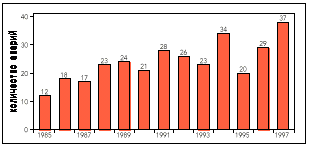 Стихийные и техногенные угрозы........................................... 3 Важнейшие выводы.................................................................. 3 1. Катастрофы не прекращаются....................................... 3 1.1. Мы все рискуем............................................................... 4 1.2.Единая линия поведения................................................ 5 1.3. Некоторые особо опасные типы угроз........................ 5 1.3.1. Радиоционные источники..................................... 5 1.3.2. Природные катаклизмы........................................ 7 2. Увеличилось ли число катаклизмов?............................ 7 2.1. Промышленные аварии................................................. 8 2.1.1. Кривая повышается............................................... 8 2.1.2. Аварии происходят везде..................................... 9 Последствия.................................................................. 11 Количество аварий...................................................... 11 2.1.3. Нарушение биоценоза........................................ 11 2.2.Природные катаклизмы – самые разрушительные 12 2.2.1.Что это такое?....................................................... 12 Стихийные и техногенные угрозы. Начиная с конца 80-х годов нашего столетия стихийные бедствия приобрели больший масштаб. Экономический урон, нанесенный природными наводнениями и оползнями, произошедшими за период 1990-1996 год, превысил суммарный ущерб за всё предыдущее десятилетие. Не смотря на то, что меры по предотвращению техногенных катастроф активно применяются с 1984 года, кривая упорно ползет вверх, показывая, что некоторые «усвоенные» уроки не до конца были осознаны и не были обозначены/приняты меры по их предотвращению. Кривая, указывающая на количество разливов нефти по вине морского транспорта, так же как и кривая количества аварий на морских платформах, в отличии от количества катастроф на суше, неуклонно падает вниз. Недостаток достаточно детализированной информации о степени опасности некоторых ядерных установок, включая проблему утилизации радиоактивных отходов, означает, что в целом риск ущерба от случайных утечек радионуклидов не может быть точно измерен. Но несмотря на это, можно предположить, что риск радиоактивного загрязнения будет повышаться. Во многом это определяется фактором изношенности многих восточно-европейских ядерных станций. Достоверная информация о сегодняшних источниках стихийных и техногенных аварий просто необходима. Важнейшие вопросы включают нижеследующие: Какая угроза идет от периодических изменений окружающей среды, таких как глобальное потепление и повышение уровня моря? И повышают ли этот риск антропогенное влияние человека на природу? 1. Катастрофы не прекращаютсяКатастрофы, будь то техногенные или естественные, происходят на территории всего ЕС и прилегающих странах и приводят к разрушению окружающей среды (ОС) и преждевременной смерти людей. В 1997 году было зарегистрировано 37 крупных промышленных аварий, что является своеобразным «рекордом» с начала введения подобной статистики. Также за 90-ые годы увеличилось количество наводнений. Хотя крупные катастрофы происходят реже чем, например, автотранспортные аварии, но они являются объектом пристального внимания по причине влияния на здоровье и состояние как окружающей среды, так и людей. Тревога вызвана также их непредсказуемостью в смысле где и когда они произойдут, а также их размеры. 1.1. Мы все рискуемВ природе не существует понятия «нулевой» риск относительно личности, общества или ОС. Не важно где люди проводят свое время, на опасном предприятии или дома, все они п