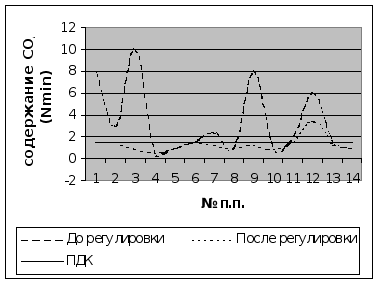 График содержания СО в отработавших газах. 6 По результатам проверки содержания окиси углерода в выхлопных газах автомобилей можно сделать следующие выводы: