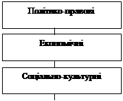 Рис.2. Формування факторів інтеграції екологічні і соціальні стандарти. Деформована структура національної економіки не відповідає критеріям суверенного розвитку України як з точки зору оптимальних пропозицій самозабезпечення та зовнішньоекономічної спеціалізації, так і з науково-технологичних, соціальних і особливо екологічних позицій. Назвемо найважливіші негативні характеристики структури економіки України: -велика питома вага фізично та морально застарілої техніки в складі основних виробничих фондів (понад 60 %), що стала результатом переважання екстенсивних методів розвитку економіки, і насамперед її базових галузей; -диспропорції в системі самозабезпечення ключових галузей життєдіяльності країни; -незбалансованість галузевої структури промисловості з т.з. її соціальної орієнтації (потенціал промисловості на 90 % формують важкі галузі; питома вага виробництва предметів споживання становить близько 30 %, тоді як у розвинутих країнах - 50-60 %). Включення України до будь-яких інтеграційних угруповань у такому стані, без чіткого бачення перспектив структурної реорганізації, може призвести не лише до консервації, а й до посилення негативних тенденцій у всіх галузях національної економіки. І навпаки, участь України в інтеграційних процесах за умов цілеспрямованої внутрішньої структурної політики дасть змогу ефективніше й швидше виправити деформовану економіку, виходячи з таких пріоритетів структурної переорієнтації: -науково-технічне та технологічне оновлення виробництва із забезпеченням його конкурентоспроможності шляхом глибокої модернізації. Зменшення ресурсомісткості за рахунок ефективного використання власних паливно-сировинних ресурсів; -підвищення рівні внутрішньої збалансованості національної економіки для зменшення зовнішньої залежності в розвитку її ключових галузей за рахунок формування системи власної міжгалузевої кооперації та забезпечення повних виробничих циклів; -формування умов для соціально орієнтованого розвитку національної економіки за рахунок, з одного боку, цілеспрямованої трансформації її структури, з другого - завдяки забезпеченню балансу споживчого ринку з доходами населення, підвищенню мотивації до праці, фінансової макростабілізації. За умов кризового стану і наявності довгострокових негативних тенденцій у розвитку національної економіки України, а також з урахування її виробничо-ресурсного потенціалу та ряду порівняльних переваг очевидною є етапність у проведенні нової економічної політики в цілому і в реалізації пріоритетів структурної переорієнтації зокрема (рис. 3). На першому етапі потрібно досягти фінансової макростабілізації, зупинити процес падіння виробництва і створити комплекс умов для виходу з кризового стану. Реальні можливості для країни поліпшити ситуацію і стати на шлях поступової стабілізації й виходу з кризи, на думку вченого Плотнікова О.[1] , виокремлюються в таких напрямах: 1. За роки державної незалежності для України все ще вкрай актуальним є розроблення й оприлюднення концепції реформування й розвитку економіки. Розвиток держави не повинен грунтуватися на різноманітних виступах вищих посадових осіб, які суперечать один одному і мають поточне кон’юнктурне, а не стратегічне загальноекономічне значення. Така концепція повинна мати ч