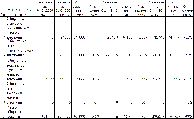 Таблица 8 Динамика оборотных средств, распределенных по степени риска вложений