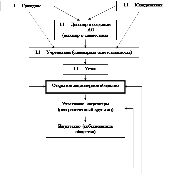 В процессе создания закрытого акционерного общества (ЗАО) акции распределяют только между его учредителями или между заранее определенным кругом лиц. Обычно это происходит относительно быстро, и учреждение общества носит как бы единовременный характер. Такое общество не вправе проводить открытую подписку на выпускаемые им акции либо иным образом предлагать их для приобретения неограниченному кругу лиц. Если кто-либо из учредителей-акционеров ЗАО захочет выйти из общества или продать часть своих акций, то правом их приобретения могут воспользоваться прежде всего другие акционеры данного общества. И лишь в том случае, если никто не воспользуется этим правом в определённый срок с момента предложения акций на продажу, они могут быть проданы третьим лицам. Такие, несколько «свойские» отношения, существующие в ЗАО, позволяют с большей легкостью вершить дела, которые идут вразрез с интересами членов ЗАО, да и, возможно, общества в целом, т. е. допускать злоупотребления. К тому же надо учесть, что по закону ЗАО не обязано публиковать для всеобщего сведения свои документы. Вот почему законодательство ограничивает число членов общества строго определённым количеством. Если же максимальный предел его членов оказывается превышен, то ЗАО должно в течение года преобразоваться в открытое акционерное общество, в противном случае по истечении этого срока оно может быть по решению суда ликвидировано. До 1992 г. в России были в основном распространены закрытые общества. Можно назвать две причины такого положения дел. Во-первых, акционерные общества создавались на базе государственных предприятий. Стремительный выход их «в свободное плавание» был опасен, так как такое предприятие могло потерять управляемость. ЗАО позволяло не отрываться от государственной структуры управления и использовать ее достоинства (предоставление кредитов, помощь в материально-техническом снабжении, в налаживании или сохранении связей с контрагентами и т. п.). Во-вторых, ЗАО позволяло до минимально возможного уровня привлекать наличные деньги акционеров при выкупе государственного имущества. Вместе с тем ЗАО имеют множество негативных сторон. Они вызывают опасность проявления монополистических тенденций в экономике. В закрытом акционерном обществе демократия «снизу» очень быстро подавляется и контроль за деятельностью руководящих органов сводится на нет. Ограничение свободы отчуждения акций сдерживает перелив капитала. Кроме того, практика свидетельствует, что на таких предприятиях ниже уровень технического перевооружения производства, темпы его развития. Можно констатировать, что закрытые акционерные общества носят все же временный характер. Организационная схема закрытого акционерного обществе представлена на рис. 1.2