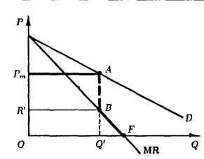 Рис. 5.1. Установление предельной цены на продукцию монополиста и модификация кривых спроса и предельной выручки. Эффективная кривая предельной выручки также будет состоять из двух сегментов — горизонтального сегмента РmА и имеющего отрицательный наклон сегмента BF. Действительно,