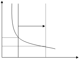 MD0 M Рис. 5. Графическое отображение денежного рынка. На рис. 5 точка Е находится на пересечении кривых спроса и предложения денег и определяет «цену» равновесия на денежном рынке. Это равновесная ставка процента, т.е. альтернативная стоимость хранения не приносящих проценты денег. Равновесие на денежном рынке является подвижным, т.е. оно постоянно меняется под воздействием ряда факторов. Представим, что меняется предложение денег, а спрос на деньги остается постоянным. Если предложение денег выросло, то 1) линия предложения денег перемещается вправо; 2) происходит движение вдоль кривой спроса вправо вниз до точки Е1 3) ставка процента снижается. Эти изменения иллюстрирует рис. 6.