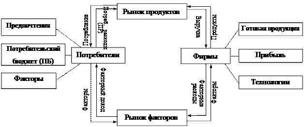 Институциональные предпосылки: · Установлена частная собственность потребителей на все имеющие ресурсы, т.е. продукция, произведенная в экономической системе (объект частной собственности) распределяется между владельцами фактора производства пропорционально вкладу каждого из факторов производства в ее производство. · Эквивалентность обмена – ресурсы, продукты как экономические блага могут обмениваться. Условия обмена – равная ценность. · Товарно–денежный характер обмена.