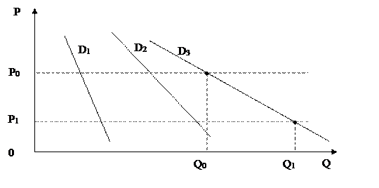 Зная понятие эластичности можно рассмотреть все функции спроса и классифицировать их по степени чувствительности на изменение цены. В качестве критерия взяли Е = 1. Получилось 3 группы: · |E| > 1 – эластичная функция (например, Р+1% => Q– 10%); · |E| < 1 – жесткая эластичность (например, Р+1% => Q– 1%); · |E| = 1; Эластичность можно рассчитать не только для традиционной функции спроса, а, например, для функции предложения:
