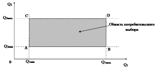 Для того чтобы математические выводы были более строгими, вводятся предположения: · Каждое благо неограниченно делимо. · Каждому потребительскому набору мы можем сопоставить уровень полезности (для любого товарного набора мы всегда можем найти кривую безразличия). Кривые безразличия имеют некоторые свойства: · Кривые безразличия не могут иметь другие формы. · Для любого потребителя в каждый данный момент времени кривые безразличия не могут пересекаться. Вывод: в каждый данный момент времени мы будем считать, что потребитель имеет систему предпочтений. Это означает, что он как бы упорядочил (проранжировал все товарные наборы с точки зрения их полезности) все пространство товаров. Если мы рассмотрим область потребительского выбора, то мы увидим, что она равномерно наполнена кривыми безразличия. Чем дальше она от начала координат, тем выше полезность. Стремление потребителя заключается в том, чтобы достичь как можно более дальней точки. При движении по кривой безразличия происходит эквивалентное замещение одного товара другим при той же полезности набора. В действительности пространство товаров N-мерное. Тогда будет не кривая безразличия, а поверхность безразличия. Условие задачи :