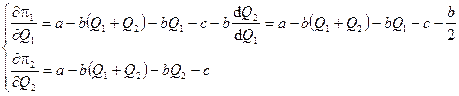 Мы предположили, что обе фирмы действуют по Курно, т.е. Смысл полученных результатов будет виден из следующего: предположим, что вместо дуополии мы начали бы рассматривать ситуацию, где количество фирм равно N. В этом случае мы получили бы систему из N уравнений. Подставив значения