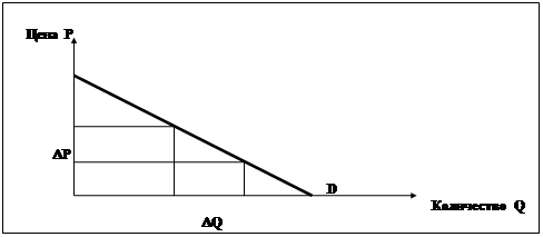 Рисунок 7 Совершенно неэластичный спрос Если изменение цены не приводит ни к какому изменению количества спрашиваемой продукции, то такой спрос является совершенно неэластичным (рисунок 7). Если самое малое снижение цены побуждает покупателей увеличивать покупки от нуля до предела своих возможностей, то такой спрос является совершенно эластичным (рисунок 8).