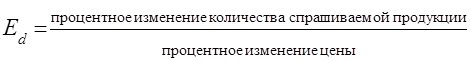 Рисунок 8. Совершенно эластичный спрос Формула ценовой эластичности Степень ценовой эластичности или неэластичности определяют с помощью коэффициента эластичности, который определяется по формуле: