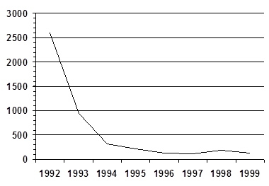Из данных таблицы 1 видно, что граждане России в период с 1995 – 1998 гг. предпочитали держать свои сбережения в наличном виде, причем преимущественно в иностранной валюте. Прирост накоплений в наличных рублях и иностранной валюте вместе составляли в это период более 85,5% накоплений всего объема прироста накоплений собственников. А значит, на инвестирование производства пошло только 14,5 % от имеющихся у населения сбережений. После августовского кризиса 1998 года реальные сбережения населения существенно сократились, доверие к банкам было сильно подорвано. Примером могут служить результаты опроса жителей Екатеринбурга, согласно которым 54,3% екатеринбуржцев не доверяют свои сбережения банкам, 35,7% - доверяют свои сбережения банкам, а 10% опрошенных заявили, что вообще не имеют сбережений.[10] А, следовательно, только небольшая часть населения. Но на сбережения денег оказывают влияние такие макро показатели, как инфляция и уровень потребительских цен, что связано с функцией денег как меры стоимости. За последние 10 лет Россия не однократно переживала быструю инфляцию, а, следовательно, и резкий рост потребительских цен.