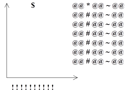 рис. 8 Алгоритм генерации случайного числа, заданным распределением. Этому алгоритму соответствует следующая процедура: Процедура редактирования распределенийЛюбая программа подразумевает обеспечение «экранного сервиса». На экране должны возникать таблицы исходных данных, которые удобно редактировать. Для этого должно быть предусмотрено создание в программе текстового файла, в котором изображается экранная таблица со специальными символами. Символы обозначают будущие места, в которых будут стоять исходные данные. Заранее оговариваются специальные символы. рис. 9 Распределение служебных мест на экране для редактирования параметров измерения. Специальные символы, которые указывают местоположение будущих значений.