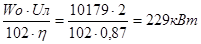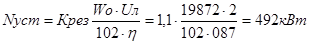 где: Крез= 1,1¸1,15- коэффициент резерва установленной мощности. Wо- окружное усилие на приводных барабанах. Wо = Sнаб – Sсб + Wбар= 27518-5719+ 1926 = 19872 даН Wбар= (0,05¸0,07) Sнаб= 0,07×27518 = 1926 даН. Где: Sнаб – усилие в набегающей ветви на приводе Sсб – усилие в сбегающей с привода ветви h= 0,85¸0,87 – КПД установки.