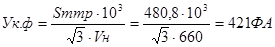 гдеa=7 – коэффициент термической устойчивости для шахтных кабелей с изоляцией из ПВХ(ЭВТ) tф=0,15с – фиктивное время срабатывания максимально-токовой защиты и выключателя ячеек КРУВ-6. На основании расчета кабельной сети 6кВ, к прокладке принимается кабель питающий ПУПП, марки ЭВТ-6-3х25+1х10+4х4. - Выбор ячейки КРУ-6, питающей ПУПП. Принимаем к установке современную конструкцию ячеек КРУВ-6-0(отводную), у которой: Iном=80А>Iн=I1т=60,6А