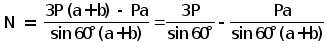 Определить: N - ?, Ay - ?, Az - ? Решение: 1.1 Уравнения равновесия балки: S(Py) = 0, S(Pz) = 0, S(mz) = 0 (1). Ay + P – 3P + N • sin 60° = 0 (2). Az + N • cos 60° = 0 уравнение моментов относительно точки A: (3). P • a – 3P • (a+b) + N • sin 60° • (a+b) = 0 Из уравнений (1), (2) находим: Ay = 2P – N • sin 60°, Az = – N • cos 60° Выражая силу N из уравнения моментов (3), получим: