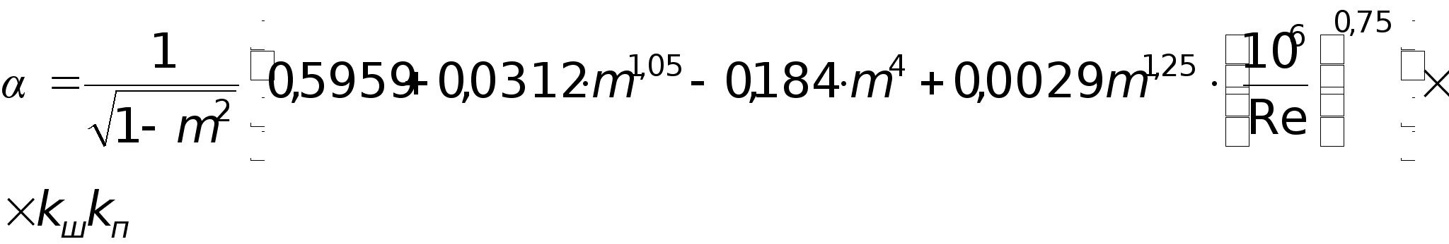 H=5,0648 Т.к. верхняя граница относительной шероховатости получилась больше относительной шероховатости, то вводим kшkп a=(c-0,3)(-1,066c2+0,36c-0,13) a=0,0234317 b=1+(c+0,3)(-0,08c2+0,024c-0,0046) b=0,998789326 c=D/103 c=0,08224 kш=am+b [Л1,ф.21] kш=1,0039443