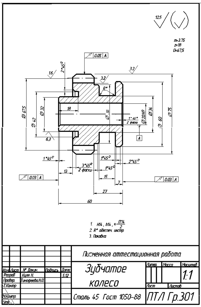 Реферат: Технологическая карта механической обработки зубчатого колеса