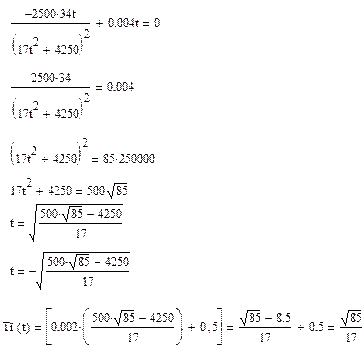 Исходя из поведения кривых, вариант развития технологического процесса будет являться ограниченным. 2. Выявим характер развития технологического процесса. В данном случае при экономии живого труда за счет роста прошлого процесс развития всегда имеет трудосберегательный характер. 3. В случае наличия ограниченного варианта развития технологического процесса установим момент времени, до которого такое развитие целесообразно (т.е. экономический предел накопления прошлого труда). Тс (t) = Тж (t) + Tп (t) (Тс (t))/ = 0 (2500/(17x2 +4250)+0.002x2 +0.5)/ =0