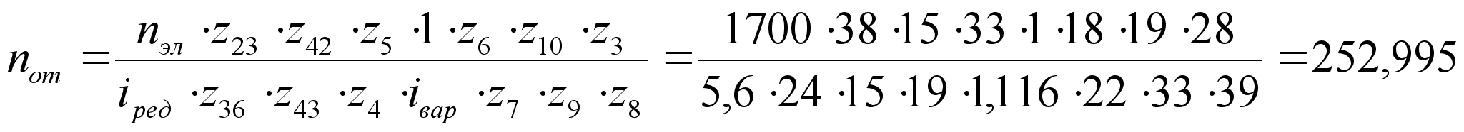 Расчёт частоты вращения (об/мин) и линейной скорости (м/мин) выпускного вала: