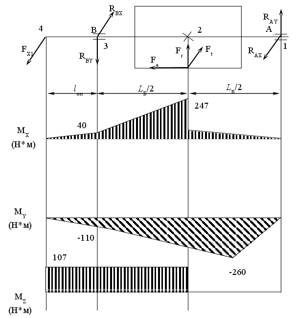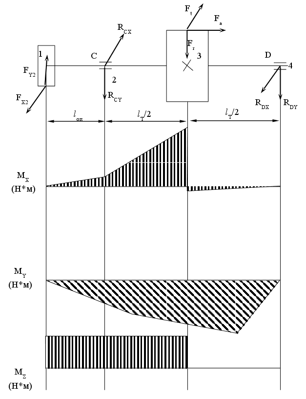 Рис.2 Эпюра моментов на тихоходном валу Y X ![]() |