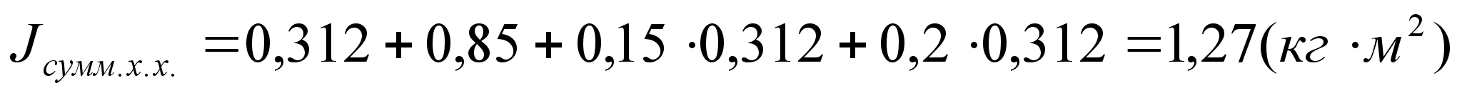 (9) где Jдв. - паспортный осевой момент инерции приводного двигателя; Jх.х.(р.х) - приведенный осевой момент инерции на валу двигателя для холостого и загруженного состояний механизма передвижения без учета момента инерции двигателя, соединительной муфты и тормозного шкива; Jм - момент инерции соединительной муфты (Jм=0,15Jдв.); Jш - момент инерции тормозного шкива (Jш=0,2Jдв.);