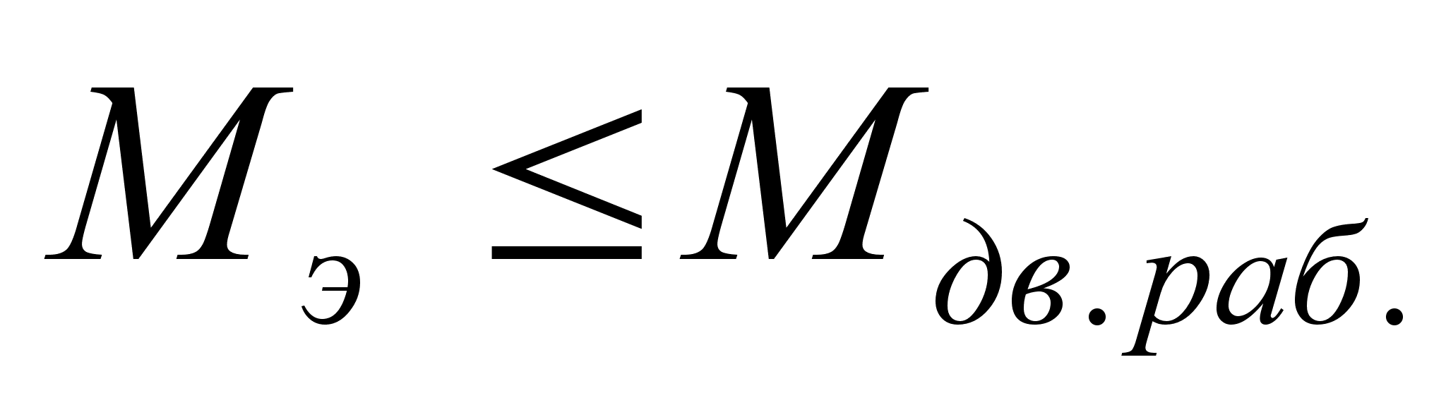 В случае, если двигатель подходит для заданной интенсивности работы, момент эквивалентный на его валу должен быть меньше номинального, т.е. должно выполнятся неравенство 13: