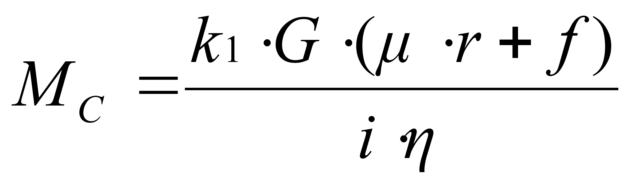 (2) где k1 = 1,25 - коэффициент, учитывающий трение реборды колеса тележки о рельс; G - сила тяжести перемещаемого груза; = 0,015ч 0,15 - коэффициент трения в опорах ходовых колес; r - радиус цапфы; f - коэффициент трения качения ходовых колес по рельсам; i - передаточное число редуктора; - КПД редуктора;