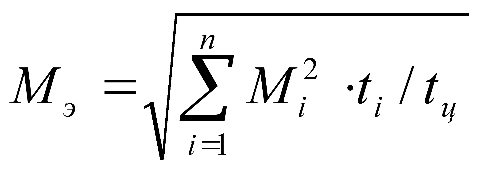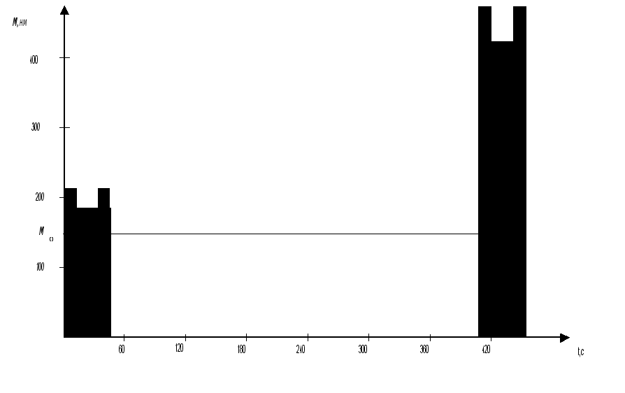 (4) Где Mi - величина момента в некотором рабочем режиме; Tц - время рабочего цикла; ti - длительности действия соответствующих моментов на вал приводного двигателя;