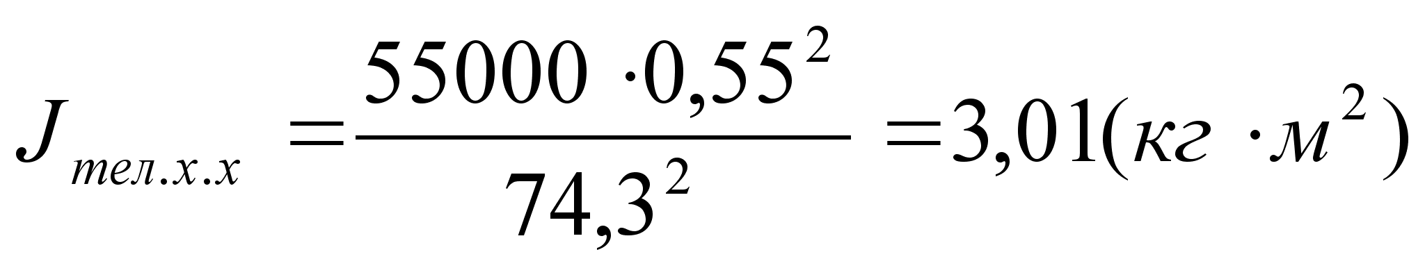 (7) где V2 - квадрат скорости поступательно движущейся тележки; m - масса тележки ; J - осевой момент инерции; 2 - квадрат угловой частоты вращения вала двигателя; Выделяем момент инерции j из вышеуказанного равенства: