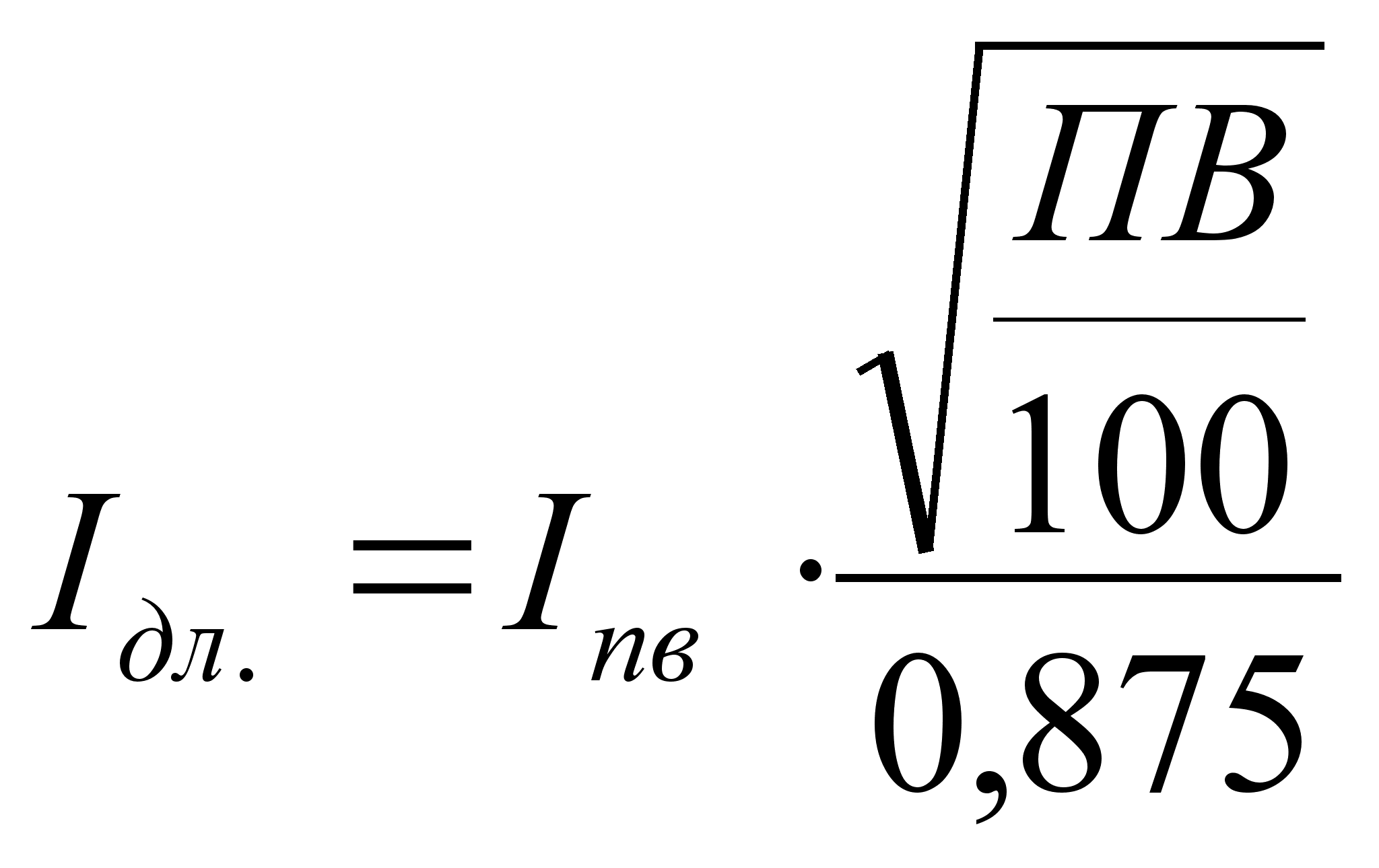 (14) где Iдл.- длительный ток; Iпв - ток двигателя при некоторой продолжительности включения; ПВ - значение фактической продолжительности включения , %;