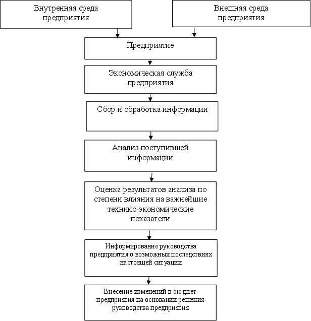 важных и сложных шагов в бюджетировании. Основой для его составления служат составленные (ранее изложенные) бюджеты и в первую очередь прогноз объема продаж. Поступление средств от основной деятельности рассчитывается с учетом изменений в дебиторской задолженности, расходы (оттоки денежных средств) – с учетом изменений в кредиторской задолженности. Прогноз отчета о движении денежных средств рассчитывается отдельно по видам деятельности (основной, инвестиционной, финансовой). В расчетах может использоваться как прямой метод, так и косвенный метод. Прямой метод расчета потока денежных средств основан на анализе движения денежных средств по счетам предприятия. Косвенный метод основан на анализе статей баланса и отчета о финансовых результатах. В Приложении 1 табл. 15 и табл. 16 представлено содержание прогнозов отчетов о движении денежных средств по видам деятельности. Обычно бюджет потока денежных средств составляется на год или полгода вперед с разбивкой по месяцам. В реальной практике нередки случаи определения понедельных (на неделю вперед) бюджетов потока денежных средств. 1.2.2. Анализ и контроль за выполнением бюджетаКонтроль – продолжение планирования, сопровождающее процесс реализации планов. Контроль в экономическом смысле – это наблюдение и управление, но поскольку эффективное управление и наблюдение невозможны без постановки целей и планирования мероприятий по реализации этих целей, то контроль содержит комплекс задач по планированию, регулированию и наблюдению1. Задачи контроля состоят в том, чтобы путем подготовки и предоставления необходимой управленческой информации ориентировать руководство на принятие решений и необходимых действий (принципиальная схема осуществления контроля в области бюджетирования представлена ниже на рис. 6.). Контроль – это инструмент для руководства предприятием, охватывающий всю деятельность и обеспечивающий достижение цели, намеченной перспективными планами. Контроль предполагает достаточную, оперативную и надежную информацию об исполнении бюджета предприятия в части как доходов, так и расходов, анализ выявленных отклонений от запланированных показателей. Контроль за исполнения бюджета предприятия осуществляется посредством сопоставления плановых показателей с фактическими на протяжении всего финансового года и после его завершения. Критерием оценки достигнутых значений показателей являются данные принятого бюджета. Для выявления отклонений фактических показателей от запланированных в бюджете на предприятии осуществляется оперативный и периодический контроль финансово-хозяйственной деятельности. Оперативный контроль достигается посредством запроса необходимой информации от подразделений предприятия и направлен на скорейшее выявление изменений жизненно важных показателей деятельности предприятия (объем реализации, прибыль).