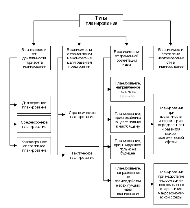 Стратегическое планирование представляет собой совокупность главных целей предприятия, а так же основных способов их достижения. Из рис.1 мы видим, что планирование делится на четыре основных типа: