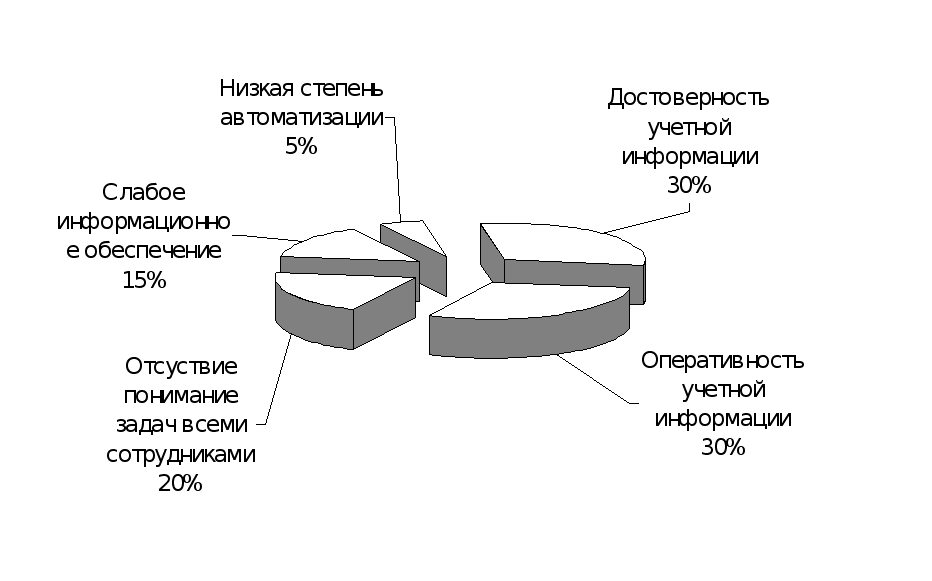 На втором месте – наличие формализованных процессов учета. Тут следует отметить, что наиболее проработанными являются процессы производственного и бухгалтерского учета. Процессы оперативного финансового учета не регламентируются государством, и их проработка целиком возлагается на предприятие. Часто при этом возникает проблема несоответствия учетных процедур и регистров оперативного и бухгалтерского учета. Многие из причин такого состояния дел в области финансового планирования и контроля, управленческого учета заключаются в недостатках традиционной функциональной организации. К этим недостаткам относятся: отсутствие ориентации на конечный результат, потери информации и ее искажение при передаче, проблемы на стыках между функциональными отделами, внутренняя политическая борьба, чрезмерная длительность процедур согласования решений, дублирование функций, размывание ответственности и т.д. Конечно, у функциональной структуры управления есть и свои