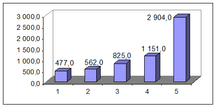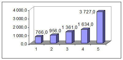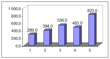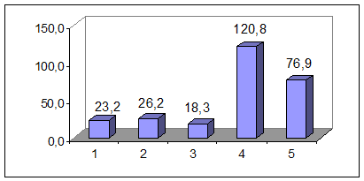 (тыс. человек) 1 – Республика Марий Эл 2 – Республика Мордовия 3 – Чувашская республика 4 – Кировская область 5 – Нижегородская область Диаграмма №4: «Сельское население»