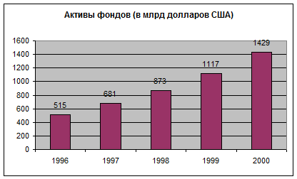 Таким образом, основными получателями иностранных инвестиций являются промышленно-развитые государства. Но и среди остальных стран Россия стоит отнюдь не на первом месте. Данные анализа ситуации на рынке финансовых активов показывают, что потенциальные инвесторы нисколько не теряют интерес к вложениям за рубежом. Скорее наоборот. В последнее время наблюдается устойчивая тенденция по увеличению объема инвестиций, приходящихся на зарубежные активы, о чем свидетельствует рост глобальных активов фондов, инвестирующих акции за границей[10] (рис. 2). Динамика роста совокупных активов инвестиционных фондов свидетельствует о том, что склонность потенциальных инвесторов к вложениям за границей, равно как и их финансовые возможности, неуклонно возрастают. Более того, темп роста активов позволяет сделать вывод, что совокупный капитал, инвестированный непосредственно в производство экономических благ за рубежом, удвоится уже через 2-3 года. Рис. 2.